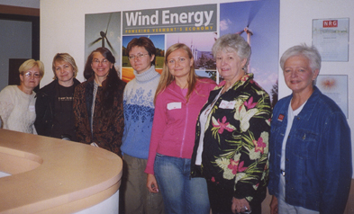 At NRG Systems in Hinesburg, delegates saw how a LEED-certified factory building is both environmentally sound and healthy for its human inhabitants. NRG Systems, producers of wind measuring systems for wind turbines, is dedicated to 'walking the talk' about sustainable development, and educating the public about the economic as well as environmental benefits of wind and solar power. Marguerite Griffiths, International Sales Manager for NRG, is at the right.
