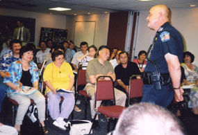Below: Participants hear about partnerships involving police and community members in Rutland, Vermont