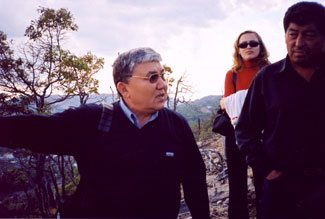 Below: Bek-Bulat Yeleushov, Head of the Department of State Control, Ministry of Environmental Protection of Kazakhstan, makes a point about the location of hazardous waste storage areas in a flood plain in Palmerton.