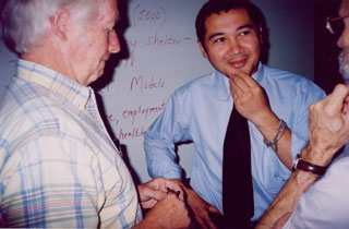 Below: Dilshod Pulatov, of the Youth Prevention and Rehabilitation Center "Dina" in Khujand, Tajikistan, speaks with the founder of The Healing Place in Louisville, Kentucky
